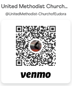 Venmo is available as a means to give to Eudora UMC. Click on the QR code below and follow the directions. Please use this new code rather than the previous on we had been using.